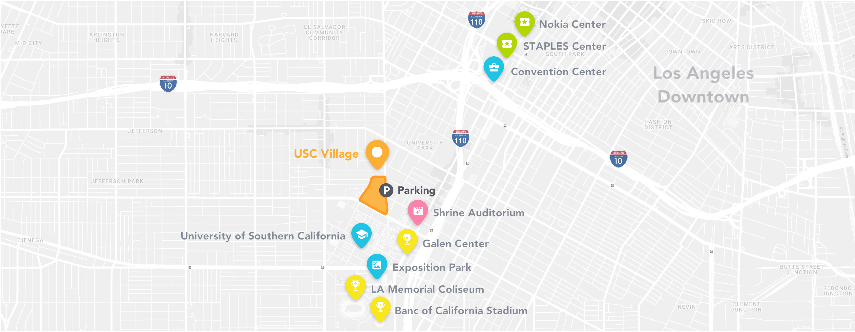 Parking at USC Village is simple and convenient with our ticketless system and 467 available spaces, making it easy for locals, visitors, and the USC community to access our 30+ shops, restaurants, and services. The entrance to our underground parking lot is located on the west side of the Hoover St. and 32nd St. intersection.